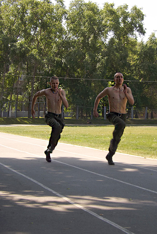 Итоговая оценка состоит из умения владеть штатным оружием - автоматом и пистолетом, способности выполнить установленные нормативы по физической подготовке - упражнения на силу, скорость и выносливость.