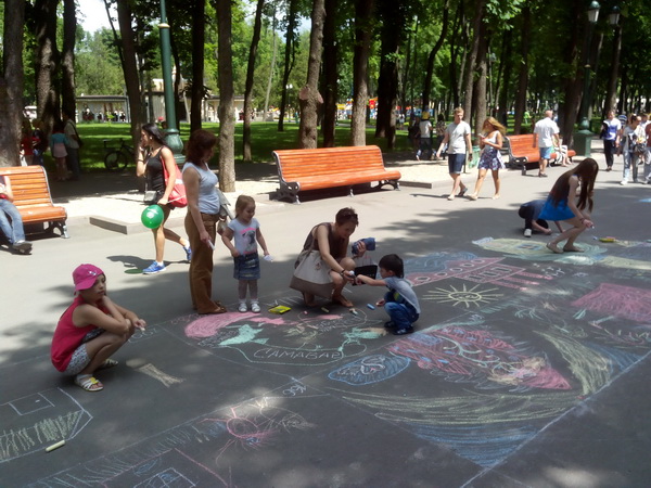 Представители Киевской и Октябрьской райпарторганизаций «Народного фронта» подготовили и вручили призы участникам конкурса по рисованию на асфальте в парке Горького по случаю Дня защиты детей.