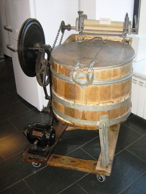 В 1824 году изобретатель из Канады Ноа Кашинг запатентовал стиральную машину, приводимую в движение мускульной силой человека.
