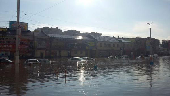 Ливневые стоки не справлялись с потоком воды. Люди бросали свои машины и добирались домой буквально в плавь.
