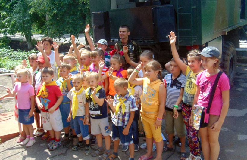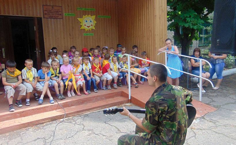 Поэтому военные, по договоренности с председателем Александро-Калиновского сельского совета Виталием Шаповаловым, приехали в местную школу, на базе которой находился летний лагерь «Солнышко». Там нацгвардейцы устроили небольшой концерт, а младший сержант Николай Золочевский развлекал ребят песнями.