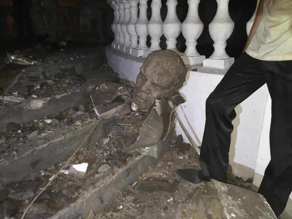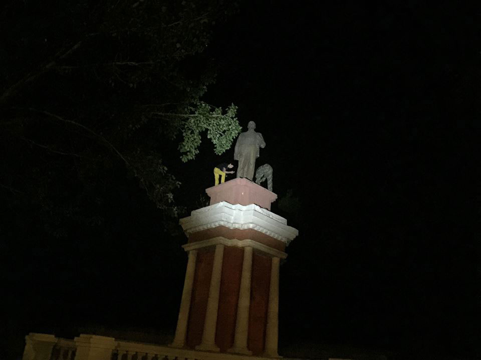 Сегодня ночью в Николаеве группа молодых людей демонтировала памятник Владимиру Ленину, который находился на Каботажном спуске.