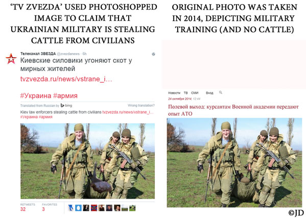 Блогеры обвинили российский пропагандистский телеканал "Звезда" в использовании фотомонтажа при иллюстрировании одного из материалов о ситуации в Украине.