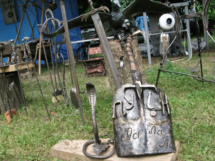 Даже дождь, который периодически накрапывал, не останавливал поклонников кузнечного искусства от созерцания того, как рождаются в умелых руках мастеров шедевры искусства.