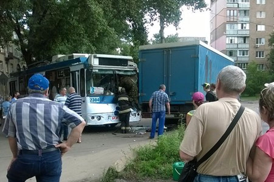 По данным ГАИ, пострадал водитель троллейбуса, ему зажало ноги.
