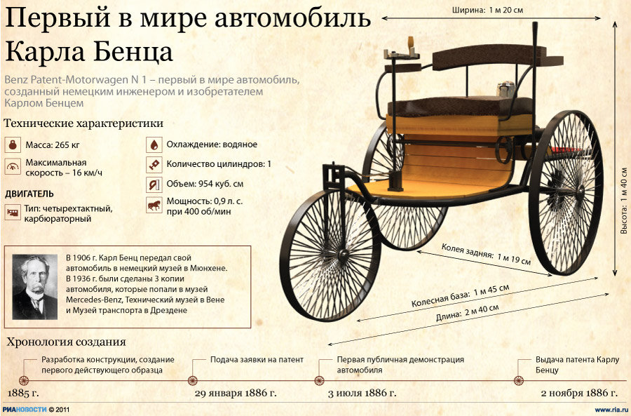 В 1885 году изобретатель Карл Бенц совершил первый в мире выезд на скорости 16 км/ч на автомобиле собственной конструкции.