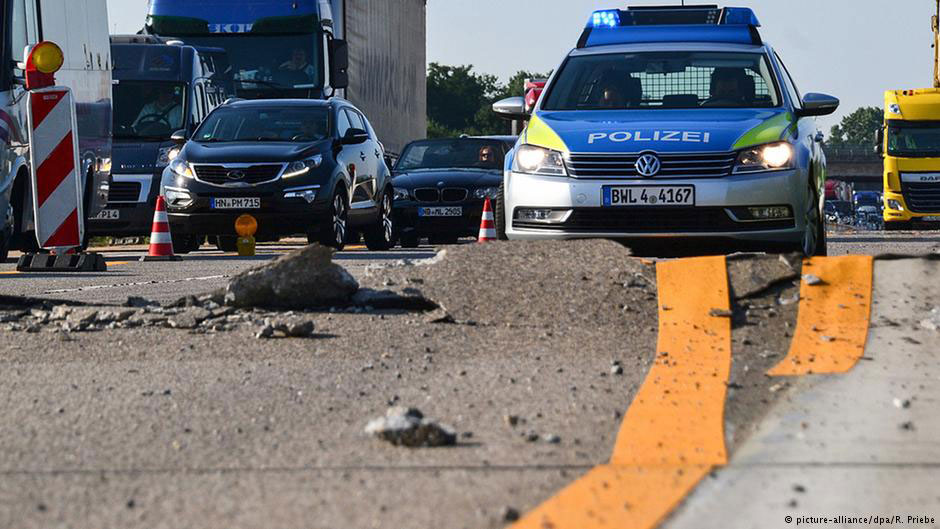 От небывалой жары в Германии страдают не только люди, но и дороги. Так в конце этой недели выглядело покрытие автобана A5 недалеко от Гейдельберга. Бетон дал трещину и поднялся на целых тридцать сантиметров в этом месте. В целях безопасности на бетонных дорогах Баден-Вюртемберга ввели ограничение скорости до 80 километров в час.