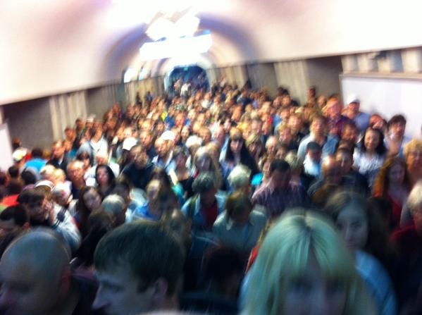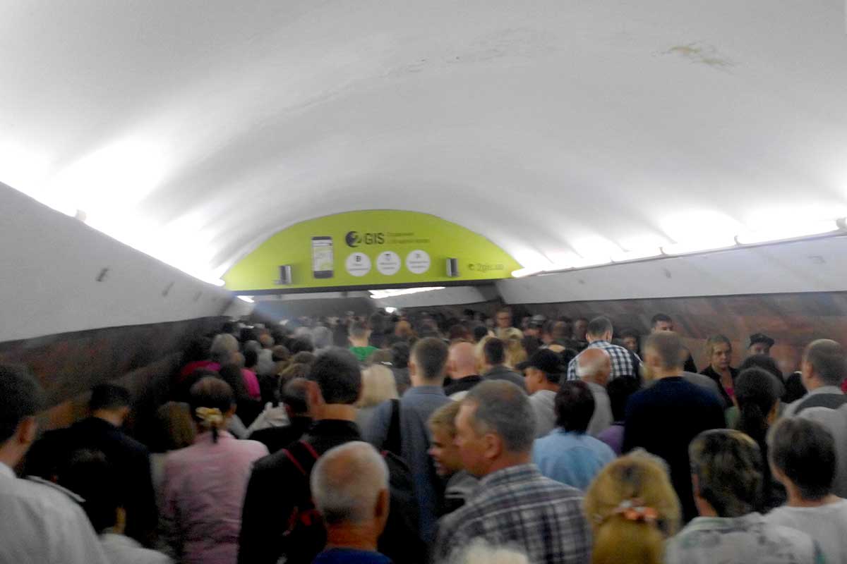 Столпотворение в метро Харькова на станции метро Советская.