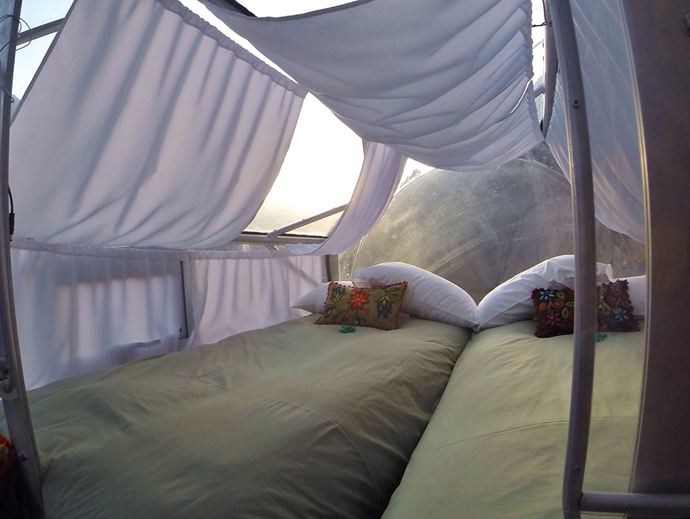 Ваш номер будет представлять собой стеклянную капсулу размером 7,5 м на 2,5 м. таких номера три. В каждом из них - четыре кровати, обеденный стол и ванная комната с биотуалетом и раковиной.