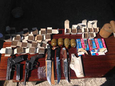 В ходе обысков в помещениях четырех местных жителей сотрудники СБУ изъяли 19 гранат Ф-1 и 18 запалов к ним, 3 гранаты РГД-5, ручную противотанковую гранату РПГ-40, винтовку системы «Мосина», пистолет системы «Наган» и патроны различных калибров.
