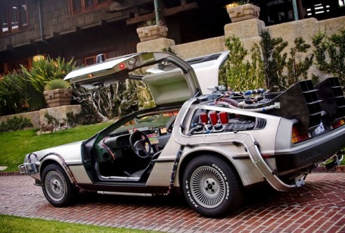 Автомобиль DeLorean DMC-12 производили в Северной Ирландии с 1981 по 1983 год. Это единственная модель, которую успела выпустить компания DeLorean Motor Company до банкротства. Создателей «Назад в будущее» привлек футуристический дизайн автомобиля с дверями типа «крыло чайки», которые открываются вверх.