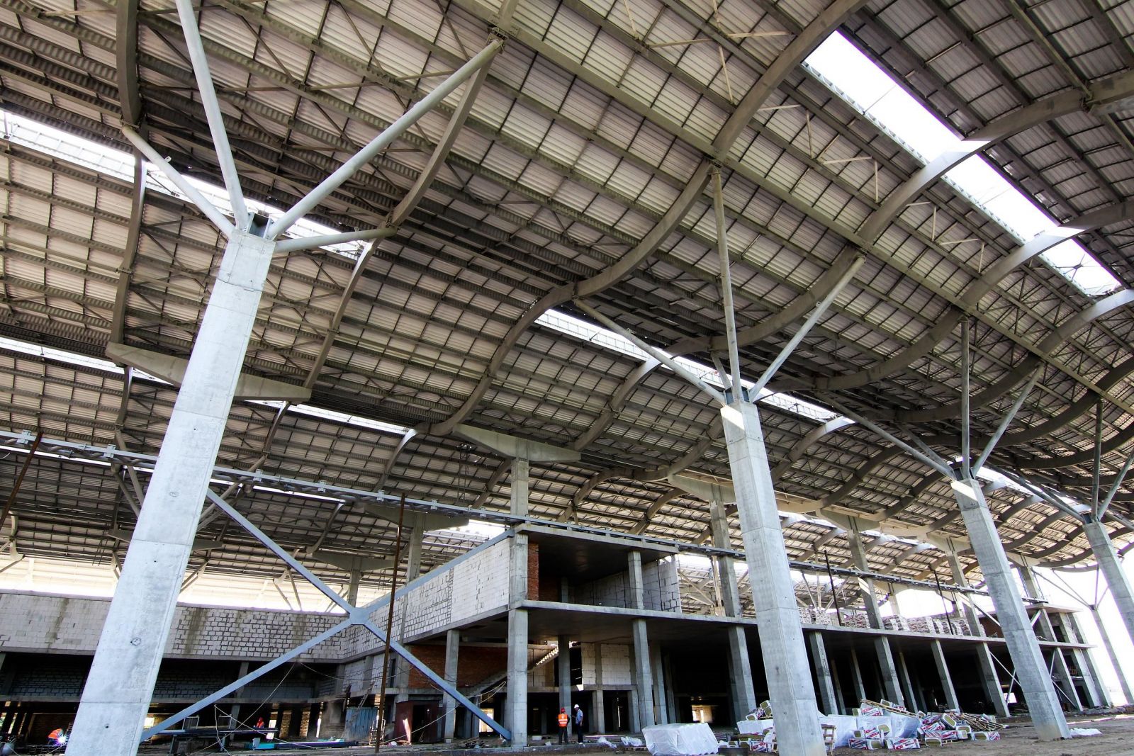 Монтаж волнообразной кровли нового терминала Международного аэропорта Одесса выполнен на 100%. В данный момент завершается укладка финишного теплоизоляционного слоя и кровельной мембраны, проводится монтаж систем дымоудаления и световых фонарей, сообщили "Главному" в пресс-службе аэропорта.