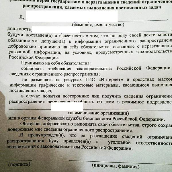 Российских наемников перед отправкой на Донбасс заставляют подписывать документ о неразглашении «сведений ограниченного распространения, касаемых выполнения поставленных задач». В сети появилось фото образца такого документа.