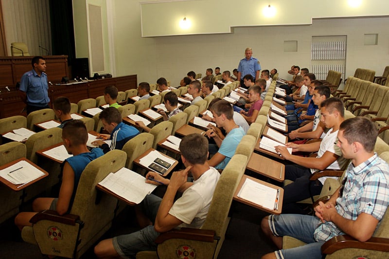Военнослужащие, прибывшие для поступления из разных частей Национальной гвардии Украины, и выпускники общеобразовательных школ сдают вступительные экзамены: физическую подготовку, профессионально-психологический отбор и медицинскую комиссию.