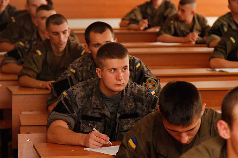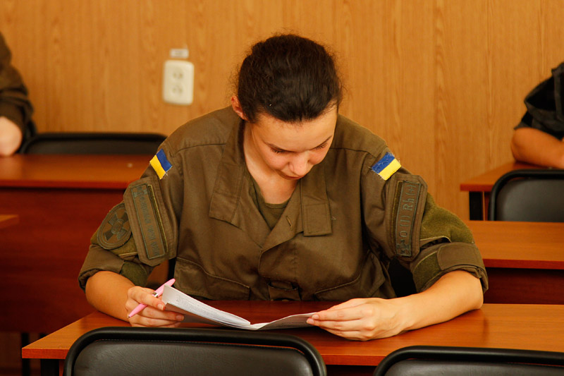 Абитуриенты из числа военнослужащих Национальной гвардии сдали экзамены по иностранному языку, математике и истории (в зависимости от выбранной специальности) и написали диктант. Впереди их ждет экзамен по физической подготовке.