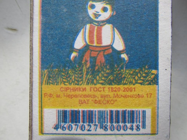 Российское предприятие "подстроилось" под покупателя и поставляет на Одещину спички "Украиночка". На коробке, где отсутствуют любые русские слова, изображены девушки в традиционном украинском наряде и в венках. Сами же коробки из-под спичек выдержаны в желто-голубых цветах украинского флага. Лишь на обратной стороне коробки, под изображением маленького украинского мальчика можно прочитать адрес производителя – "РФ, город Череповец", пишет "ТСН".
