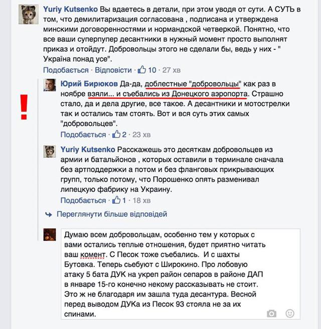 Советник Президента Украины Юрий Бирюков обвинил добровольцев в трусости во время боев за Донецкий аэропорт. Об этом сообщает Цензор.НЕТ со ссылкой на страницу в Facebook Garry Shumoff.