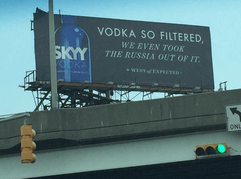 "Водка настолько очищена, что мы даже убрали из нее Россию", - гласит рекламный слоган на фото.