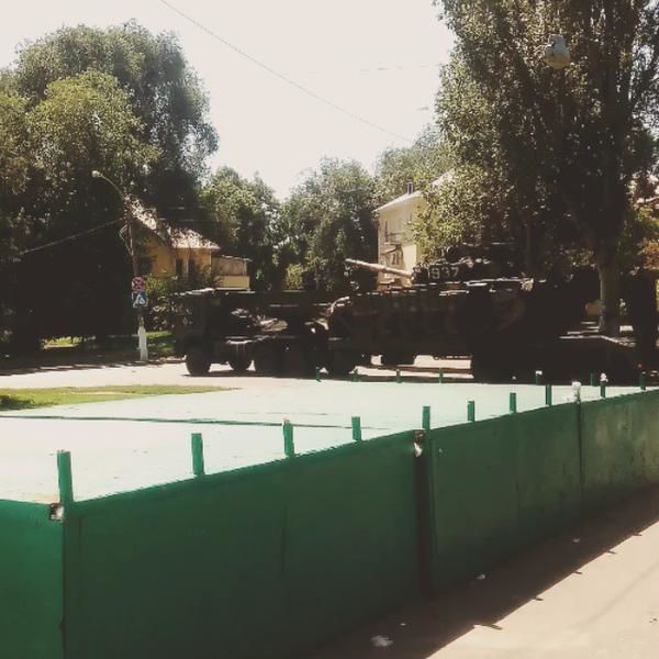Во двор одной из донецких больниц в Пролетарском районе Донецка прибыл тягач с танком Т-72, который стоит на вооружении российской армии.