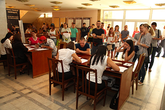 На открытие пришло немало желающих служить в новой патрульной полиции, представители общественности и журналисты.