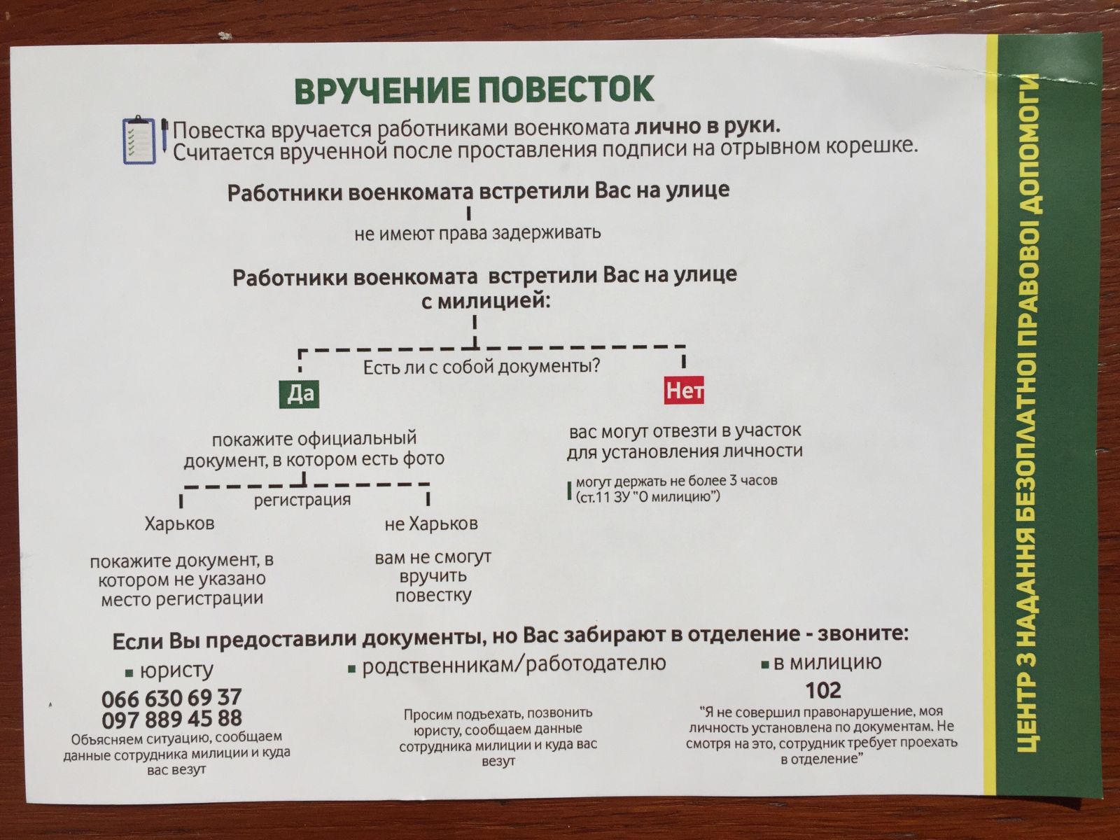 В харьковском IT-кластере и «Центре по предоставлению бесплатной правовой помощи» разработали памятку, как себя вести, если вам вручают повестку прямо на улице.