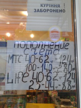 Комиссия за пополнение счета в оккупированной Макеевке составляет от 10 до 50%. Местные жители опубликовали фото расценок на пополнения основных мобильных операторов с учетом комиссии. При этом комиссия в терминале существенно отличается от доплаты при покупке ваучера. Так, один из самых популярных ваучеров «МТС» — 40 грн стоит 62 грн или 124 российских рубля.