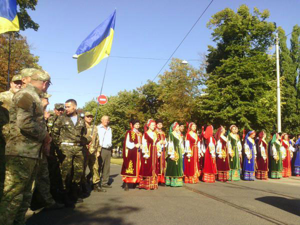Церемония поднятия флага Украины состоялась сегодня, 23 августа, в День Государственного Флага, у флагштока на перекрестке пр. Правды и ул. Галана.