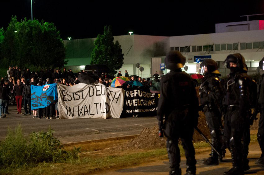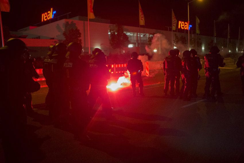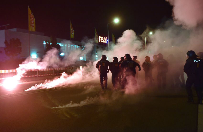 В ночь на субботу несколько сотен человек пытались прорваться к недавно созданному в Хайденау приюту для беженцев, 31 полицейский получил ранения, глава городской администрации заявил об угрозах в свой адрес. Только после применения полицейскими спецсредств толпу удалось остановить.