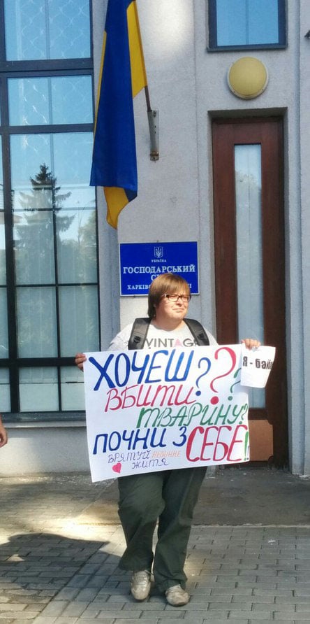В Харькове активисты пикетировали Хозяйственный суд в знак поддержки Национального парка в судебном процессе с охотхозяйством, передает корреспондент "Главного".