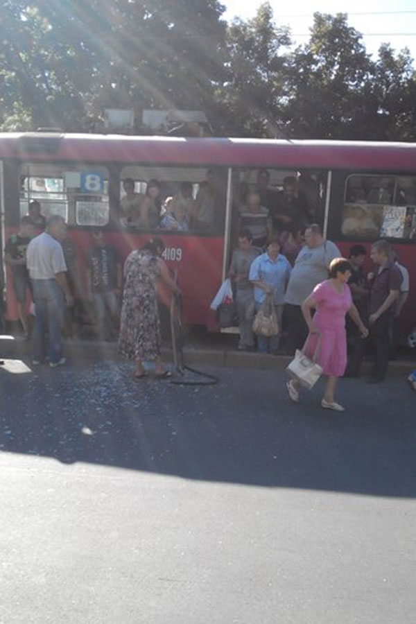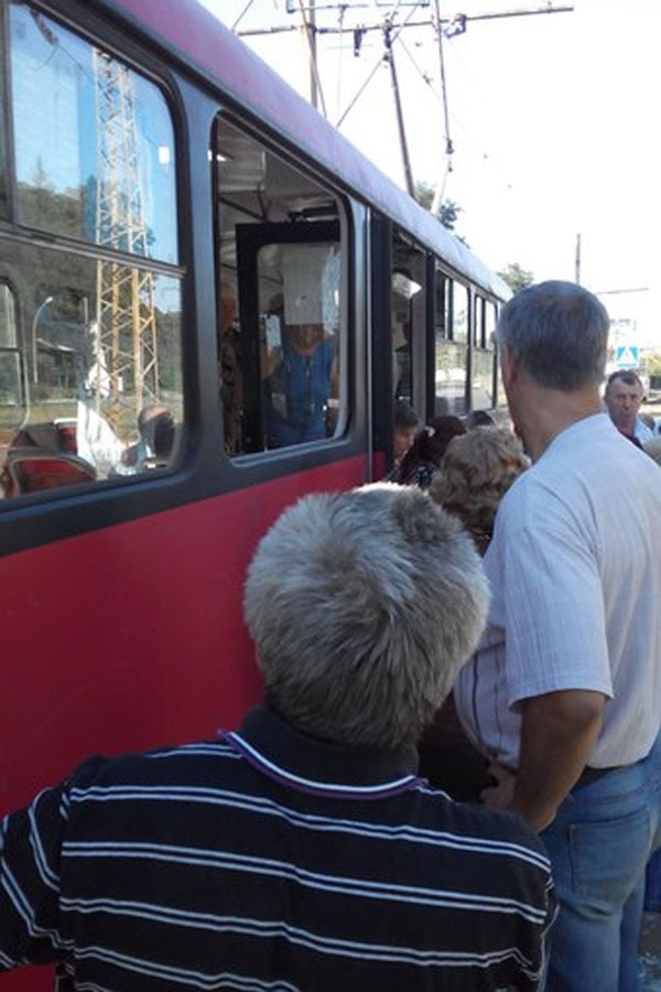 В Харькове мужчина вышел из трамвая вместе с ... окном (фото)