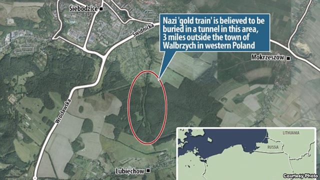 У города Вальбжих на юге Польши местные жители заметили военных, которые приехали, как предполагается, для возможного разминирования на месте готовящихся раскопок пропавшего 70 лет назад нацистского поезда. Как передает специальный корреспондент Радио Свобода Петр Черемушкин, вероятность, что якобы обнаруженный состав является именно тем самым «золотым поездом», жители Вальбжиха оценивают в «99 процентов».