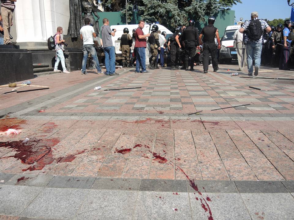 Под Верховной Радой в результате провокации ранены уже около 30 человек, для их вывоза не хватает "скорых".