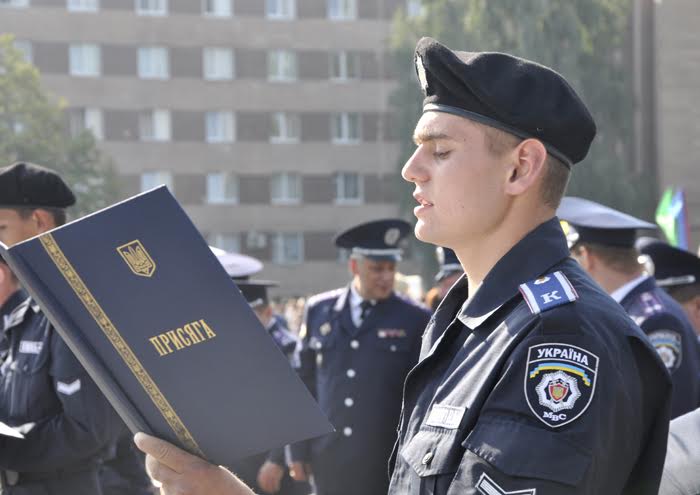 Позже началась церемония принятия Присяги. Следует отметить, что курсанты-первокурсники Харьковского Национального университета внутренних дел первыми среди высших учебных заведений правоохранительной системы Украины приняли Присягу работника полиции.