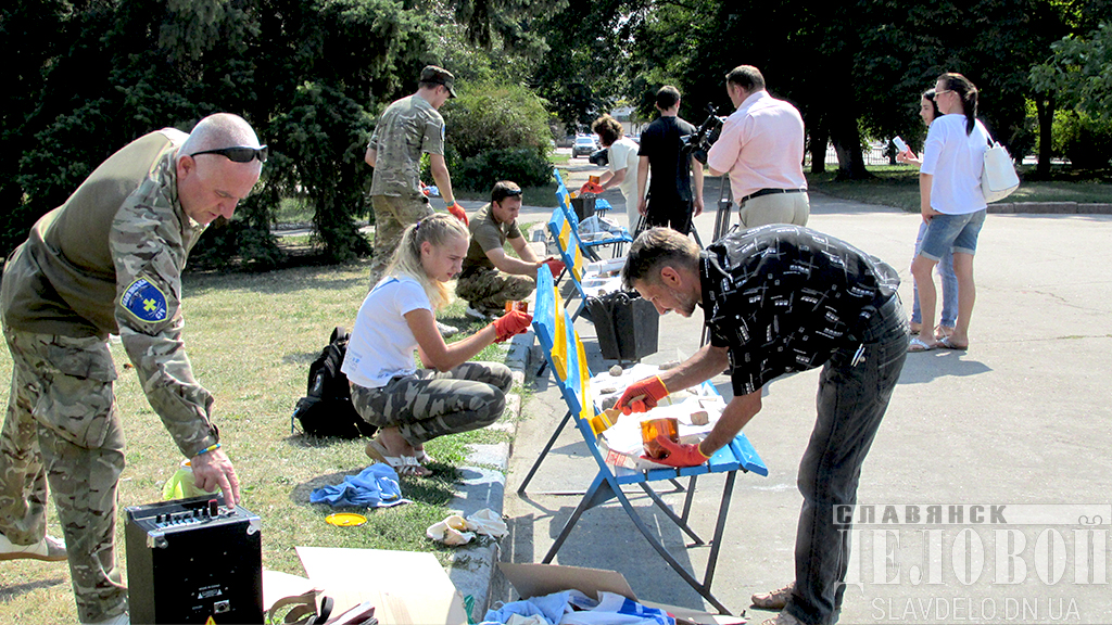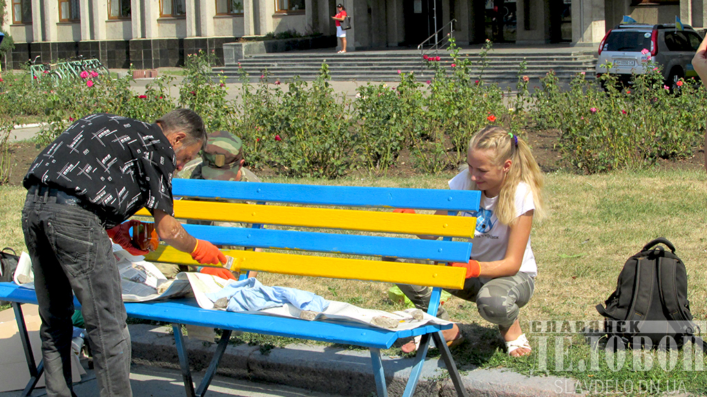В Славянске прошла акция в духе национальных традиций. Активисты добавили украинского колорита скамейкам на центральной площади и докрасили их дощечки в желтый цвет.