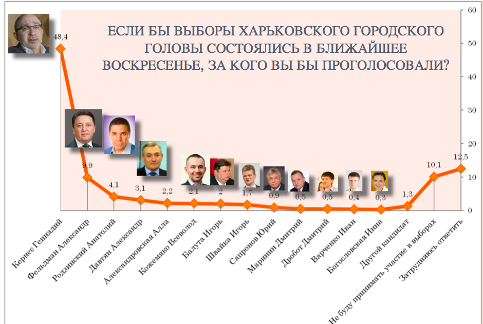 Таким образом социологи считают, что в случае второго тура, больше половины харьковчан могут, как это уже было в 2010 году, голосовать против Геннадия Кернеса, и Анатолий Родзинский имеет хорошие шансы на победу на выборах мэра Харькова.