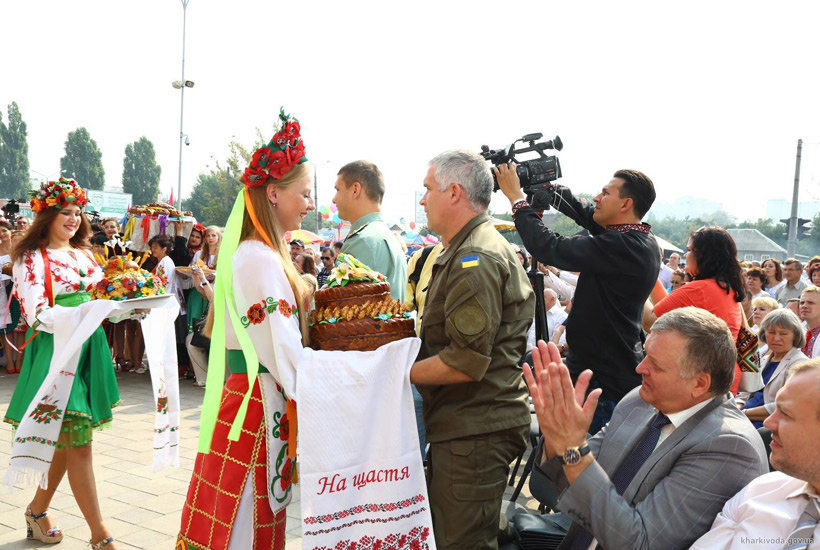 На прошедших выходных в Харькове проходила Большая Слобожанская ярмарка. Приглашение на это мероприятие получили и бойцы Национальной гвардии Украины. В ходе ярмарки состоялся парад караваев. Душистые и вкусные подарки организаторы ярмарки передали бойцам Национальной гвардии Украины. Поэтому в этот день у гвардейцев был праздничный обед, на котором они наслаждались караваями, испеченными мастерами из разных районов Харьковской области.