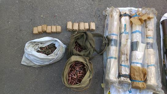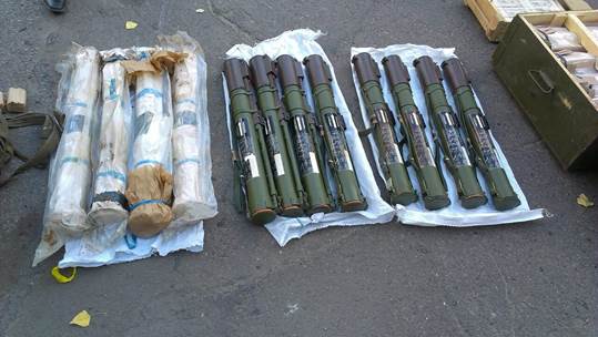 Как сообщает пресс-центр СБУ, из тайника изъято 17 гранатометов РПГ-22, пять гранатометов РПГ-26, гранаты различных типов, минные взрыватели МВЧ-62, автоматический гранатомет, самодельное взрывное устройство, пороховой заряд к 125-мм снаряду, более трех тысяч патронов и т.д.