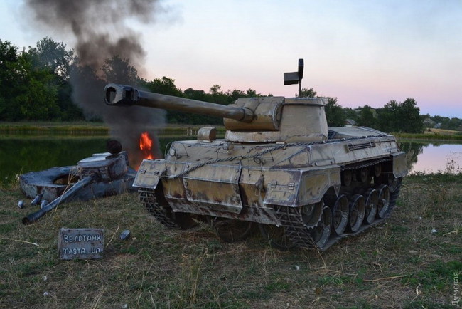 Молодой парень из Одесской области Сергей Коваль стал победителем конкурса Велотанк, который проходил среди местных фанатов популярной онлайн-игры World of Tanks. Участникам конкурса предлагалось создать на базе велосипеда копию одной из бронемашин данной игры, сообщает public.od.ua.