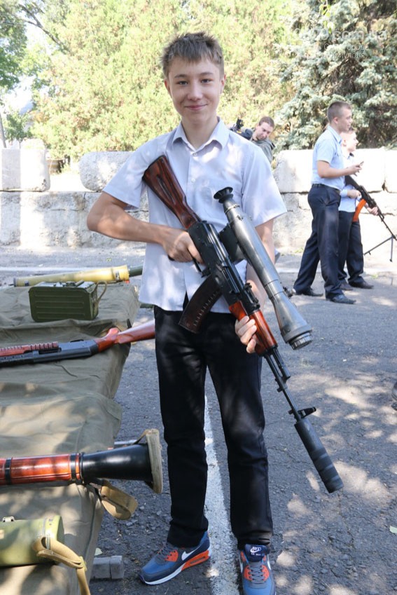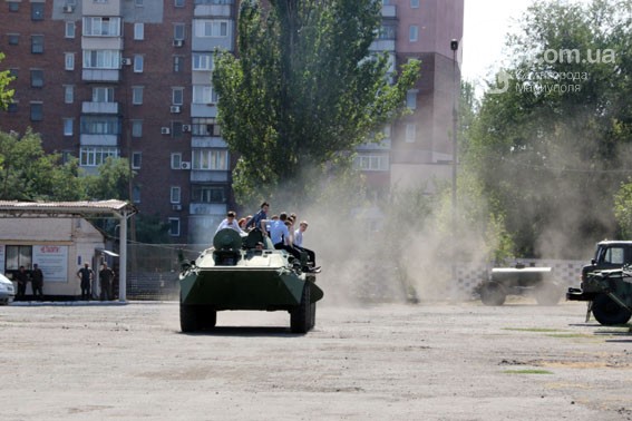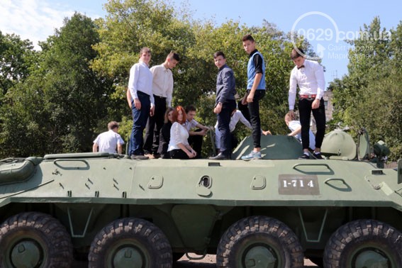 Бронетранспортеры, БРДМы, КАМАЗы и прочий транспорт – любознательные школьники с восторгом рассматривали представленные модели, изучали их устройство и с удовольствием позировали на фоне бронетехники перед объективами фотоаппаратов своих товарищей. Особый интерес среди детей вызвала трофейная БМП, отбитая у террористов и выведенная из Широкино. Машина находится на капитальном ремонте, после чего пополнит автопарк Национальной гвардии Украины. По многочисленным просьбам старшеклассников с разрешения командования их прокатили на БТР-80.