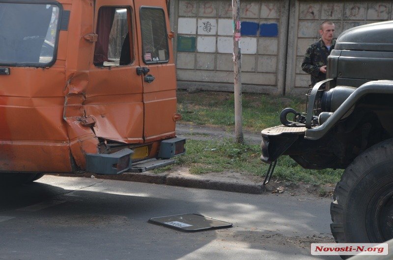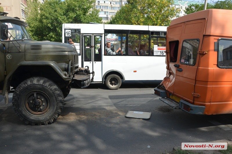 В пятницу, 11 сентября, в Николаеве на Херсонском шоссе столкнулись армейский грузовик и микроавтобус городского маршрутного такси.