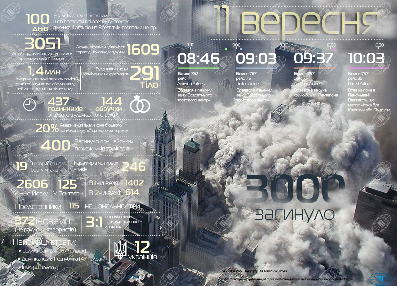 Укринформ подготовил инфографику по случаю годовщины 11 сентября - крупнейшего теракта в истории.