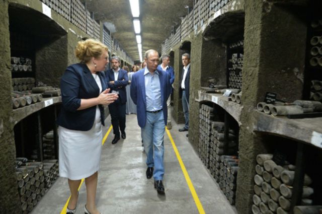 Отмечается, что Путин и Берлускони также прошли по главной из 9 галерей библиотеки вин, где собрано 500 тысяч бутылок. "Главное правило винотеки - сколько забираешь, столько и закладываешь, сейчас мы как раз начинаем новую закладку из первых 5 тысяч бутылок хереса 2012 года", — сказала Павленко.