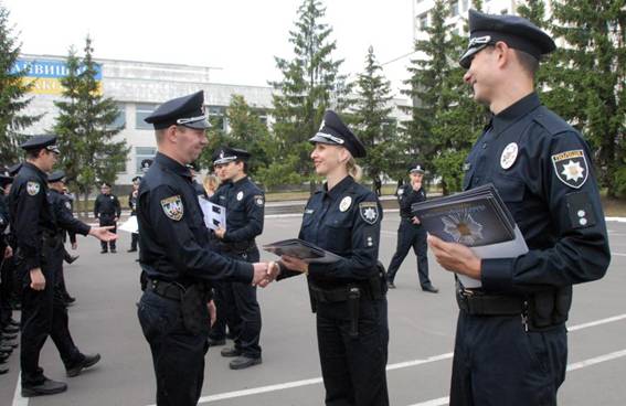 Сегодня на базе Национальной академии внутренних дел прошла церемония вручения погон офицеров патрульным полиции Киева, сообщает официальный сайт МВД.