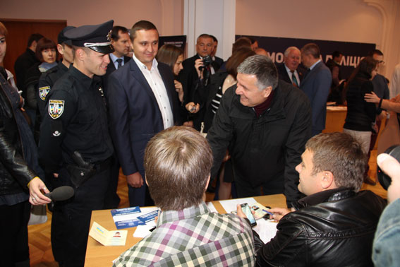 Министр внутренних дел Украины Арсен Аваков напомнил присутствующим, что лозунгом новой полиции является «СЛУЖИТЬ И ЗАЩИЩАТЬ!». Поэтому общество должно увидеть, как работается этим ребятам.