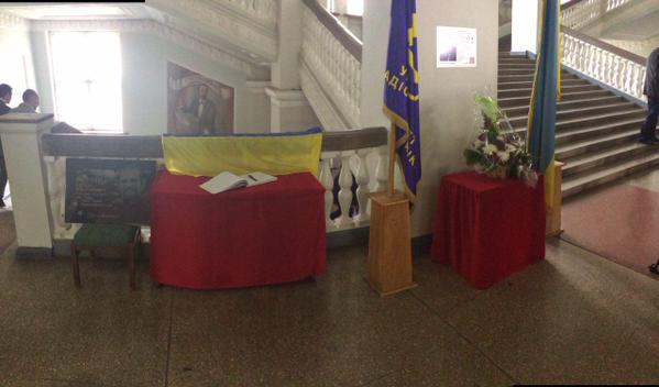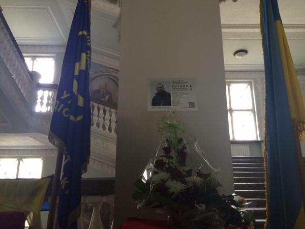 Мемориальная доска будет находиться снаружи вуза, внутри здания повесили памятную табличку с надписью "В этом университете с 1998 по 2002 год учился Герой Небесной Сотни Котляр Евгений Николаевич".
