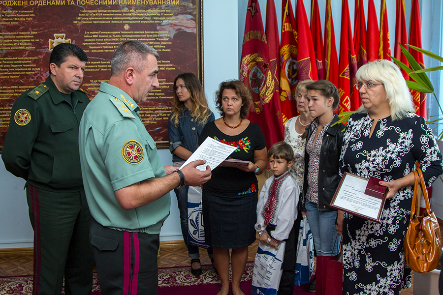 Церемонія вручення нагород пройшла у Центральному музеї НГУ. Т. в. о. Командувача Національної гвардії Микола Балан, вручаючи нагороди родичам загиблих бійців, відзначив, що держава забезпечуватиме їм належний соціальний захист: