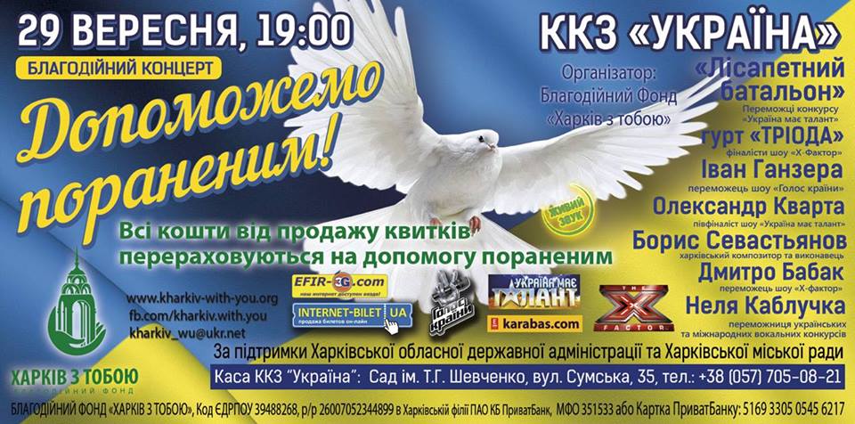 29 сентября в 19:00 в ККЗ Украина (г.Харьков) состоится концерт "Поможем раненым!".