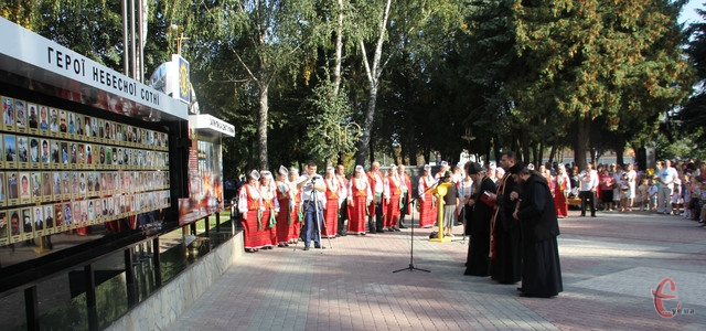 Открыть доску предоставили право городскому голове, вдовам погибших Героев Небесной Сотни и капитану Вооруженных Сил Украины.