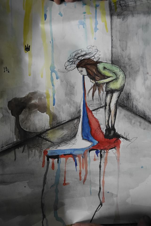 В социальных сетях обсуждается картина 15-летней художницы из Кременной Луганской области, на которой наглядно изображено отношение подростков к России.