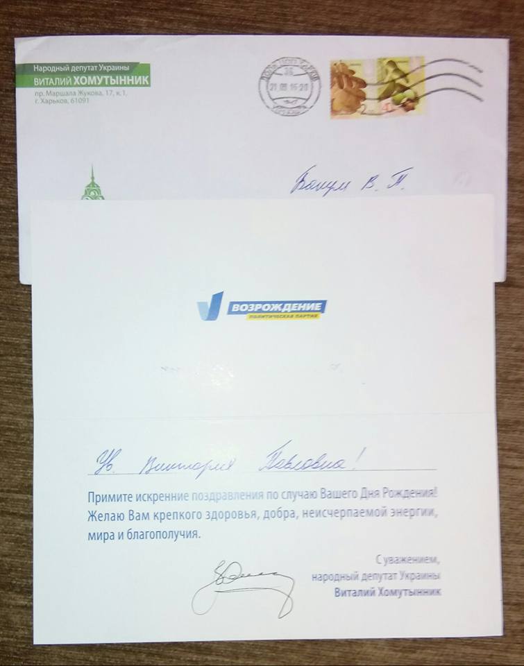 "У моей жены на днях будет День рождения. Приятно по такому поводу получить поздравление от народного депутата? Наверное, было бы приятно, если бы с этим депутатом были бы хоть чуток знакомы.